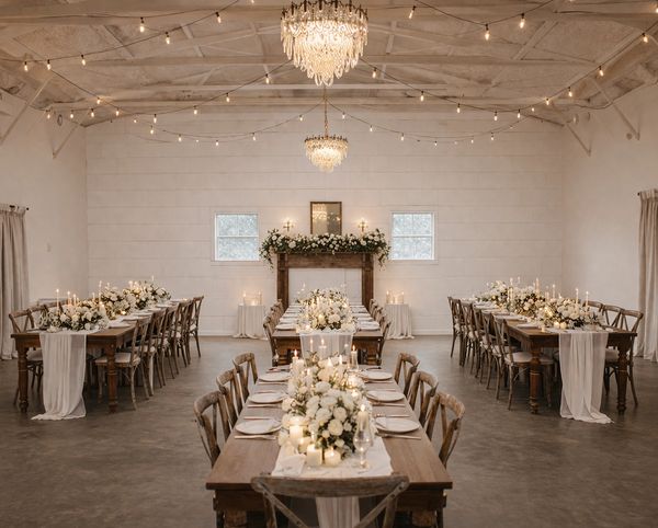 Designed with both comfort and elegance in mind the Sparrow Barn is an air-conditioned barn features stunning chandeliers, paver flooring, and elegant décor throughout.